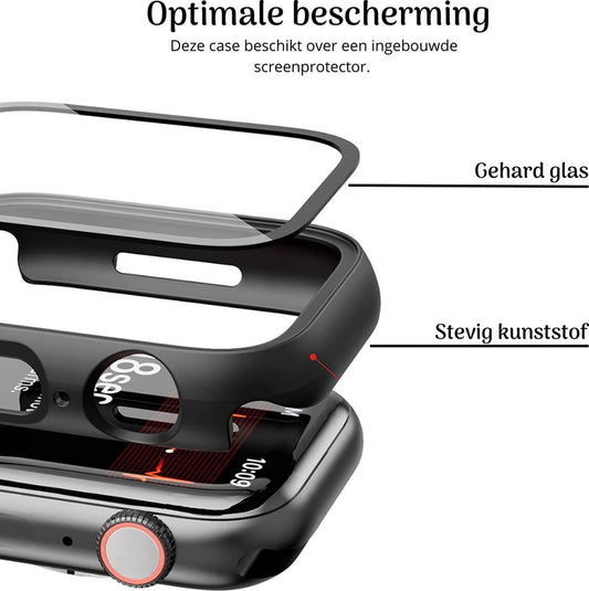 EP Goods - Full Cover Tempered Glass Screen Protector Cover/Hoesje Voor Apple Watch Series 4/5/6/SE 44mm - Hard - Protection - Zwart