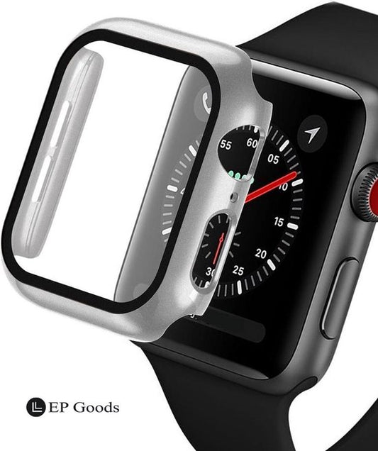 EP Goods - Full Cover Tempered Glass Screen Protector Cover/Hoesje Voor Apple Watch Series 4/5/6/SE 44mm - Hard - Protection - Zilver